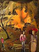 Échykié is mainly inspired from the dreams, sleeping and awake, of its creators. One may identify in Échykié's creations some universal concerns, but as seen through a prism of irony, as well as filtered through an acute sense of nonsense. The choice of topics is spontaneous: the images draw themselves, often by accident. It’s as if Échykié travels in a parallel world, denying its two passengers any control, only granting the ability to choose the images they think will make the best postcards to reflect their voyage.